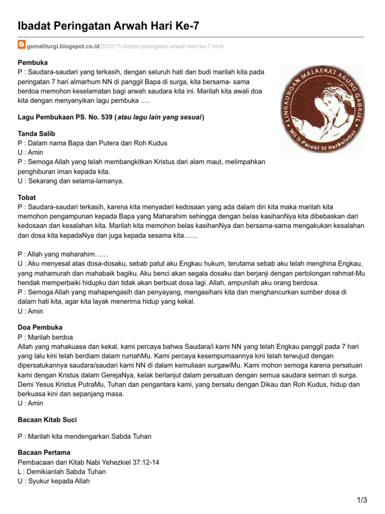 Ibadat Arwah 3 Hari Meninggalnya Bapak Stevanus Tandirerung Umat Lingkungan Santo Petrus 4 Minggu 15 Mei 2022 Add Comment Edit Pada malam hari ini Sabtu 14 Mei. Senin 1 8 November 2021. Setiap menjalankan ibadah apa pun selalu diiringi dengan doa kehadirat Allah SWT.